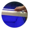 El modelo CR cuenta con un mando a distancia para poder accionar el sistema de manera remota y minimizar el riesgo de exposición a la luz UVC.