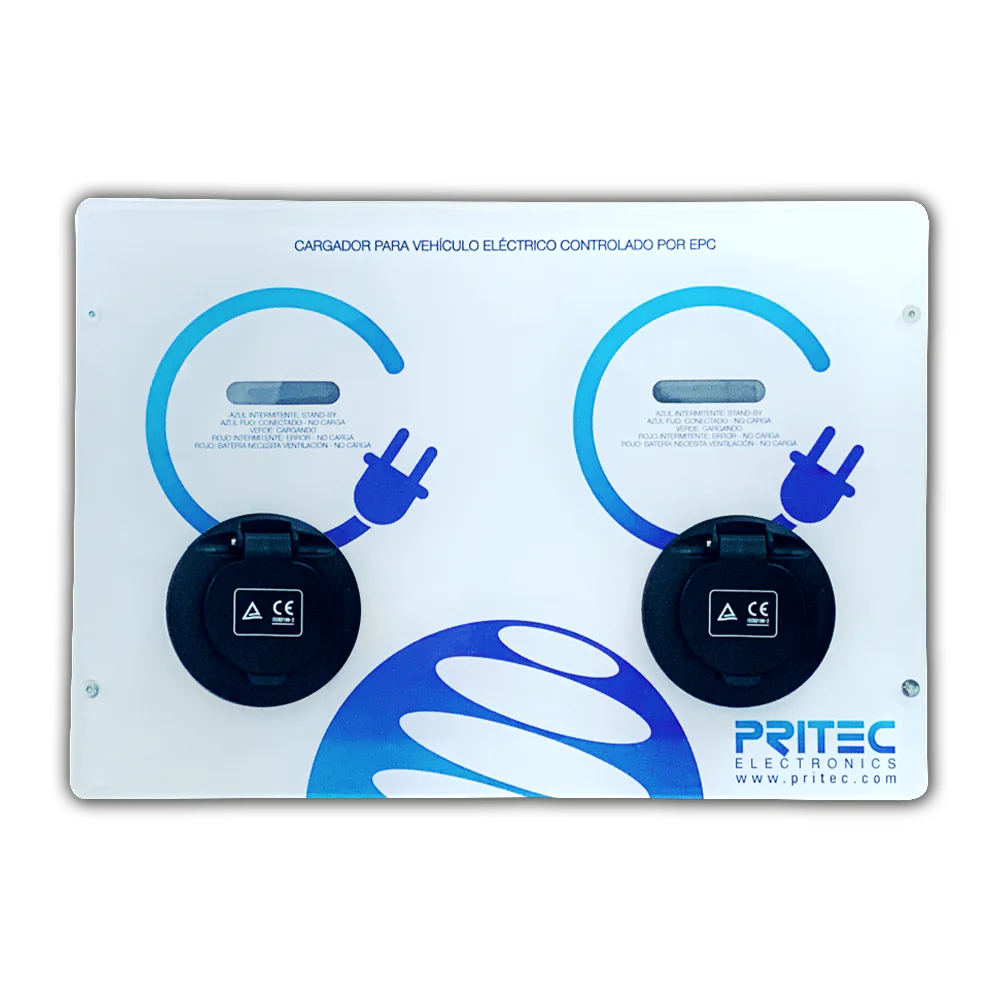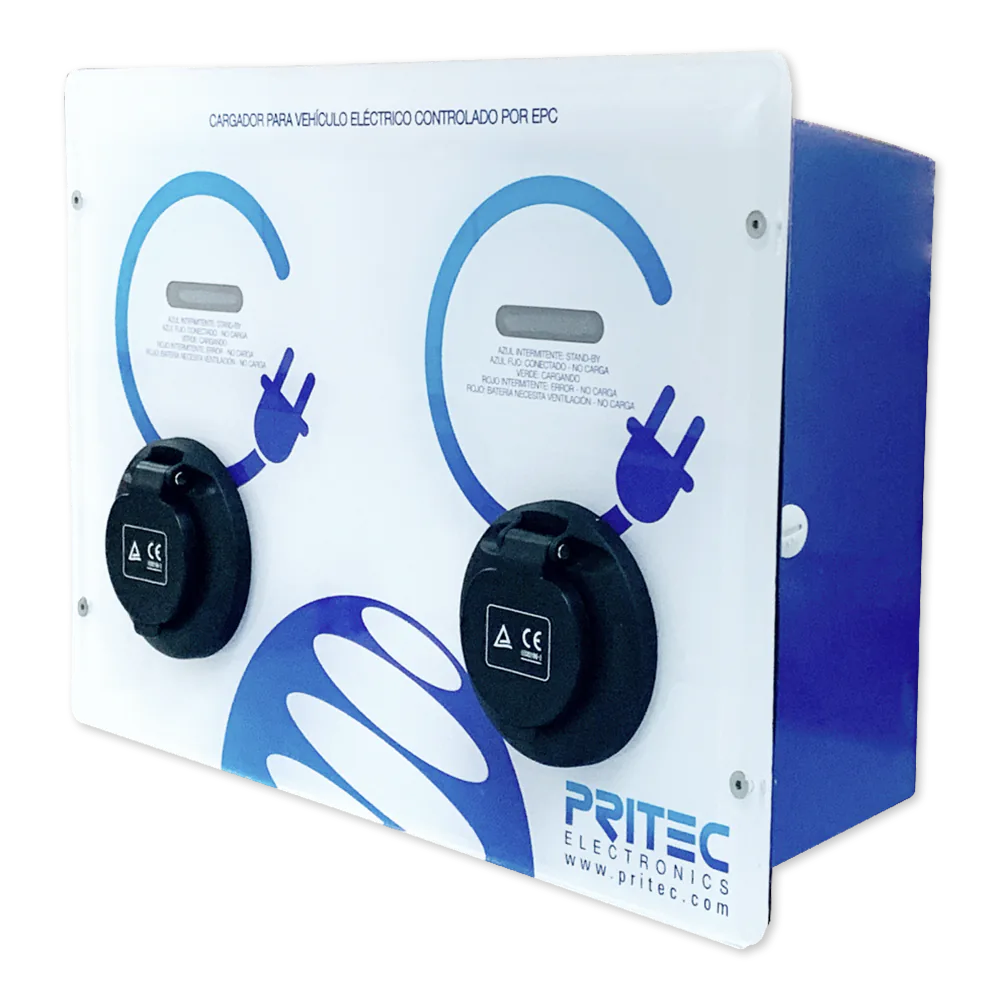 Internally it has two independent charging systems but the installation is carried out as a single point, so the times and costs of wiring and installing are half. Available in both single-phase and three-phase.